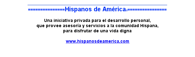 Hispanos de América, constituída el 18 de octubre de 2004 e inaugurada en el mes de noviembre de ese mismo año, es una iniciativa privada para el desarrollo personal, que provee asesoría y servicios a la comunidad hispana para disfrutar de una vida digna.